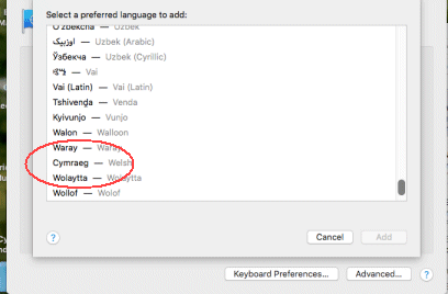 Welsh keyboard driver in Macintosh OSX |