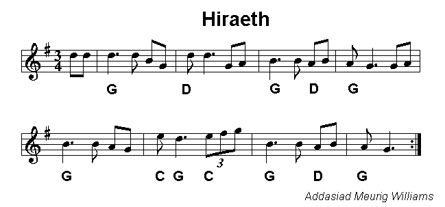 Hiraeth (Longing) is a well-known Welsh song which is in a pentatonic scale and