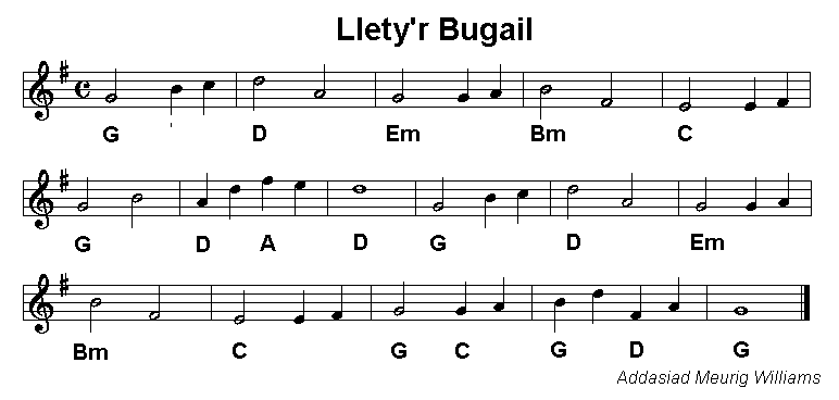 Llety'r Bugail (the Shepherd's Shelter) is a lovely majestic but heart-warming Welsh harp tune which is used as a wedding march.